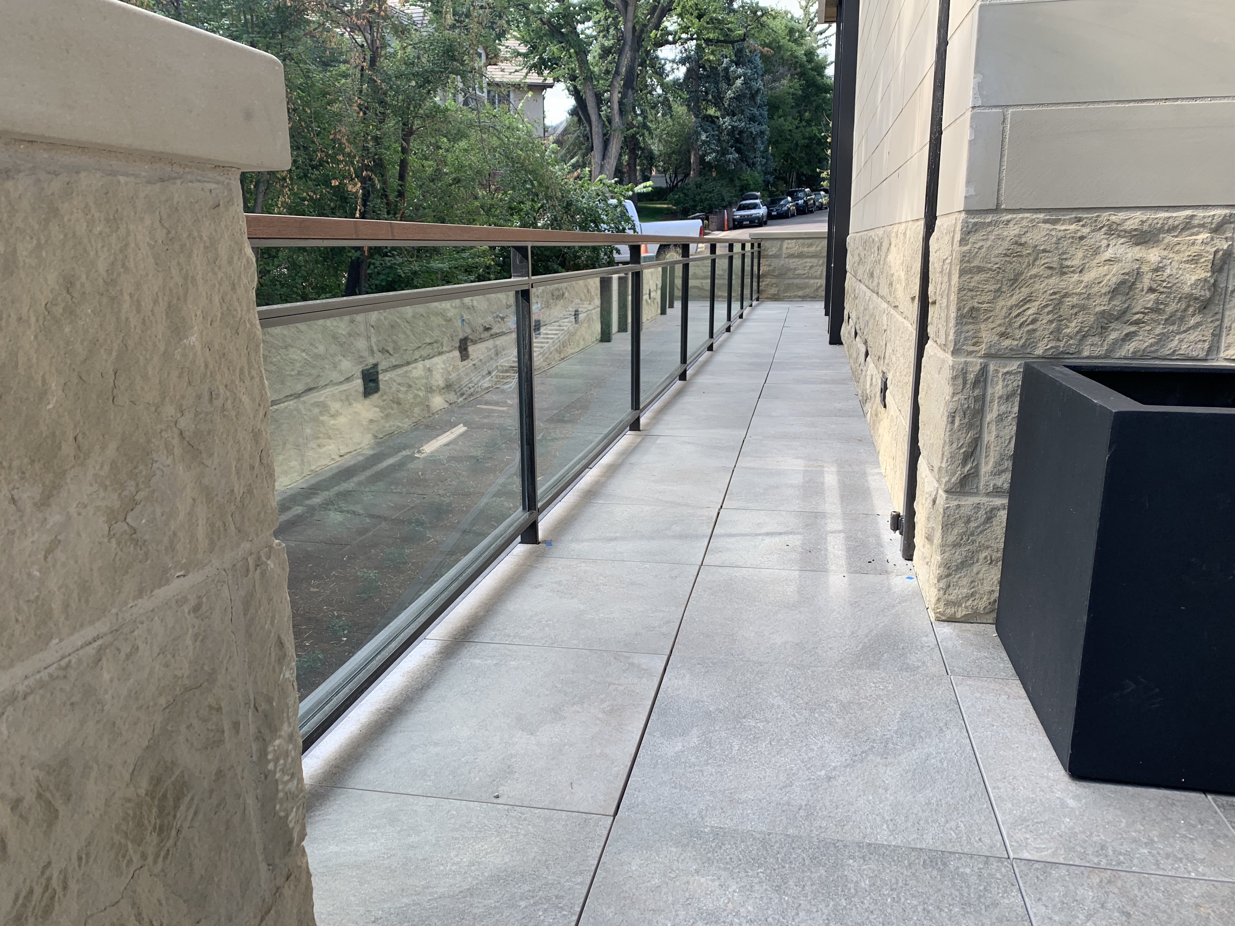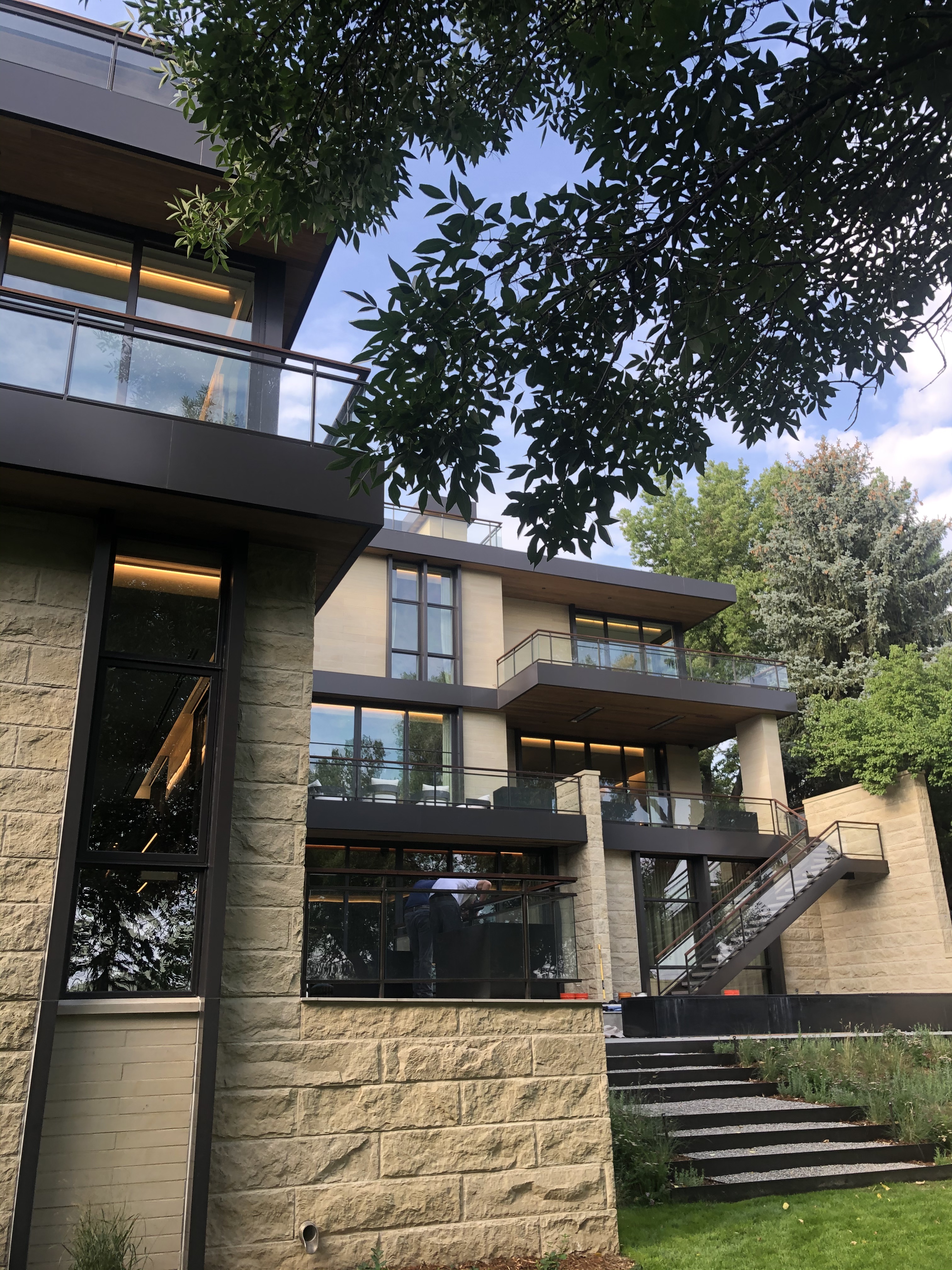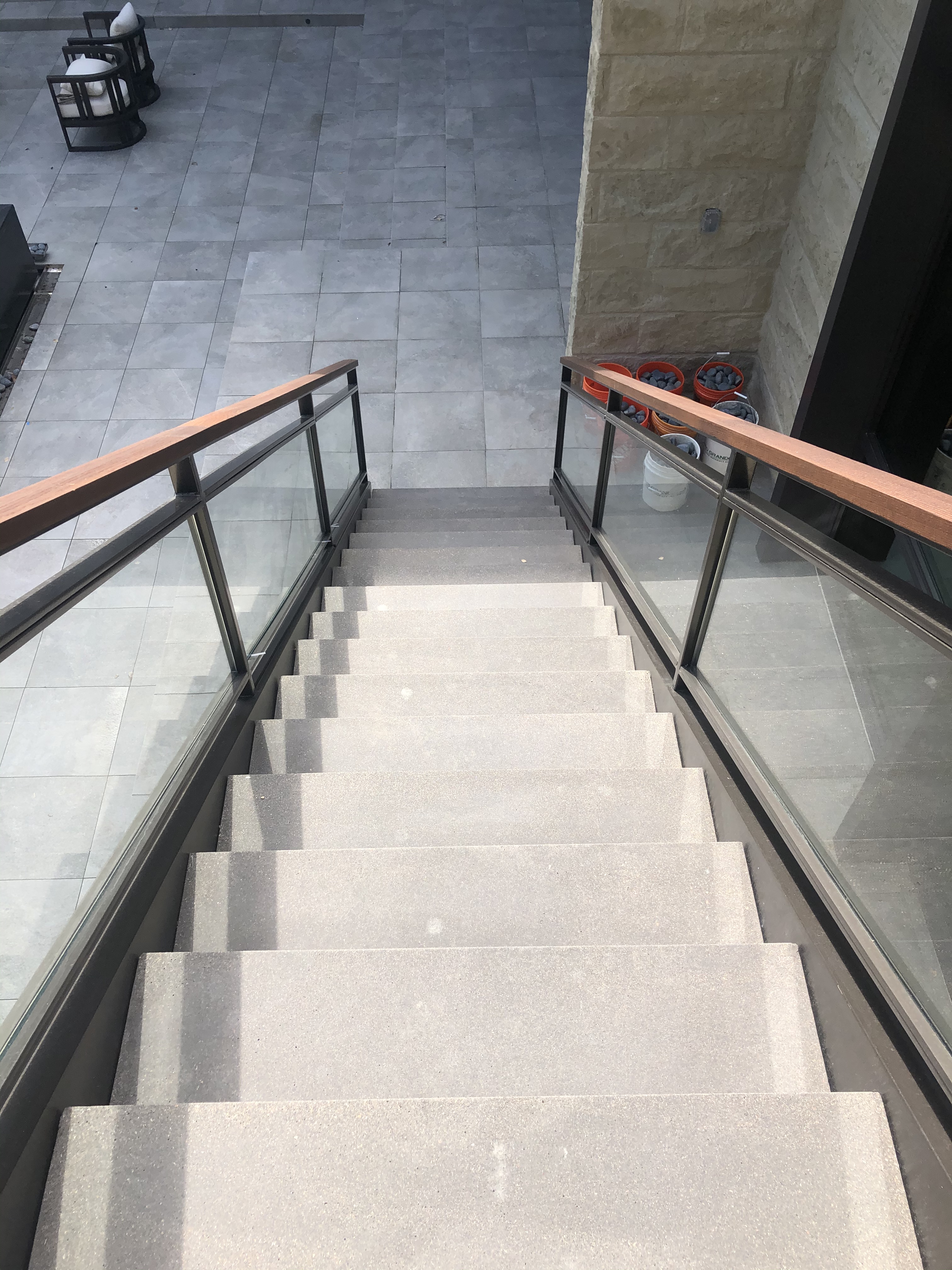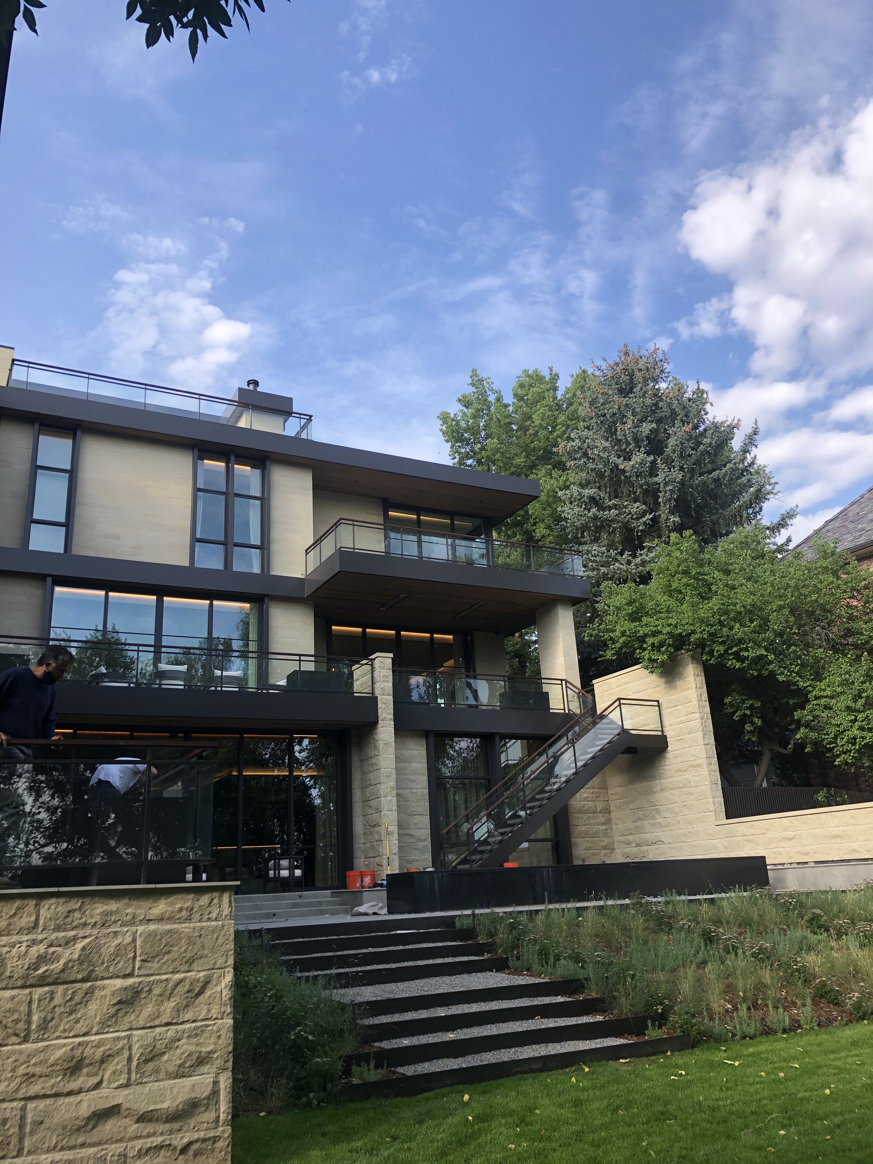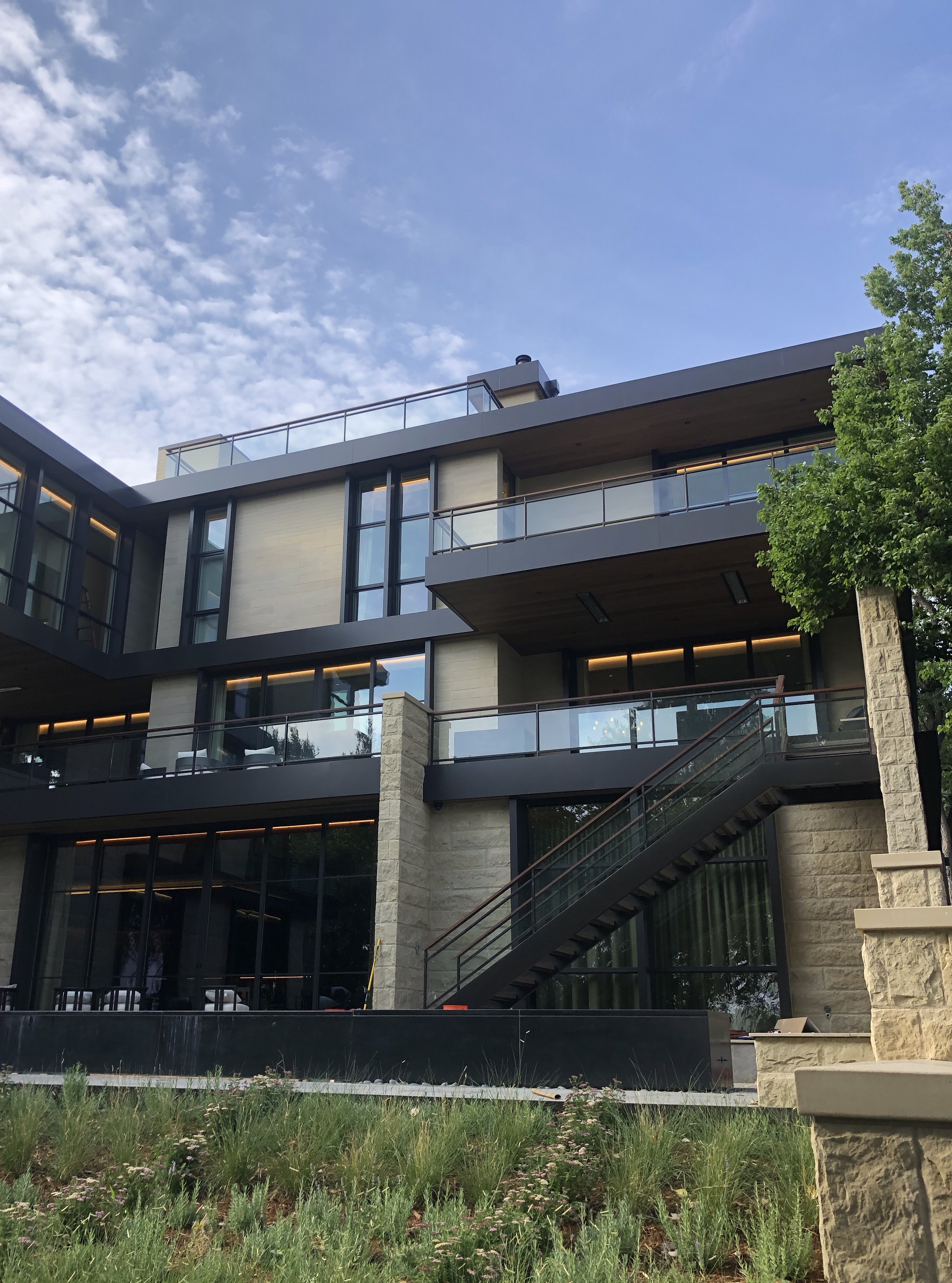Featured Project: Alameda Custom built 15,000 Sq. Ft. home with 400′ of interior & exterior glass railings, custom solid steel stringer plates , custom exterior steel stairs with paver treads.