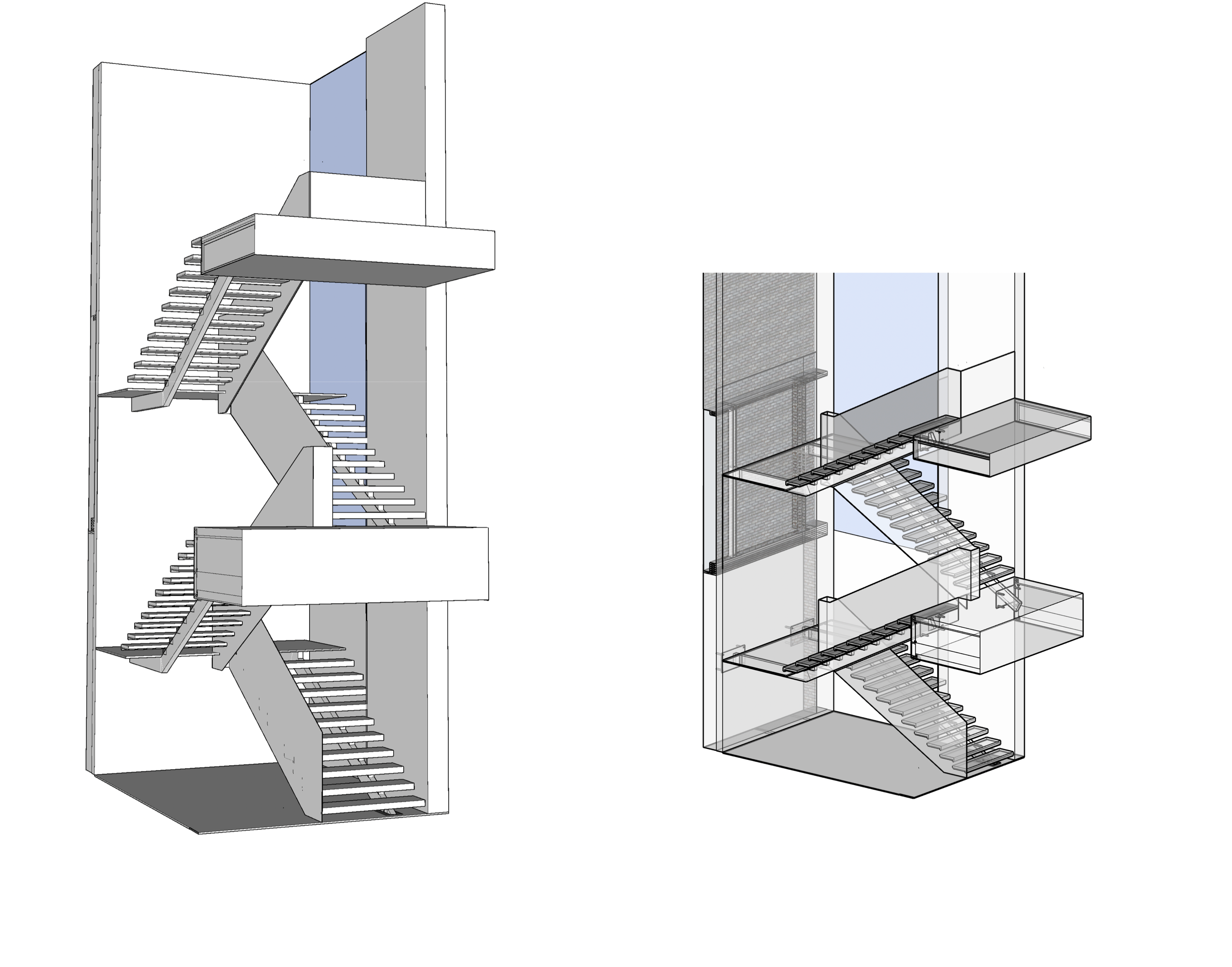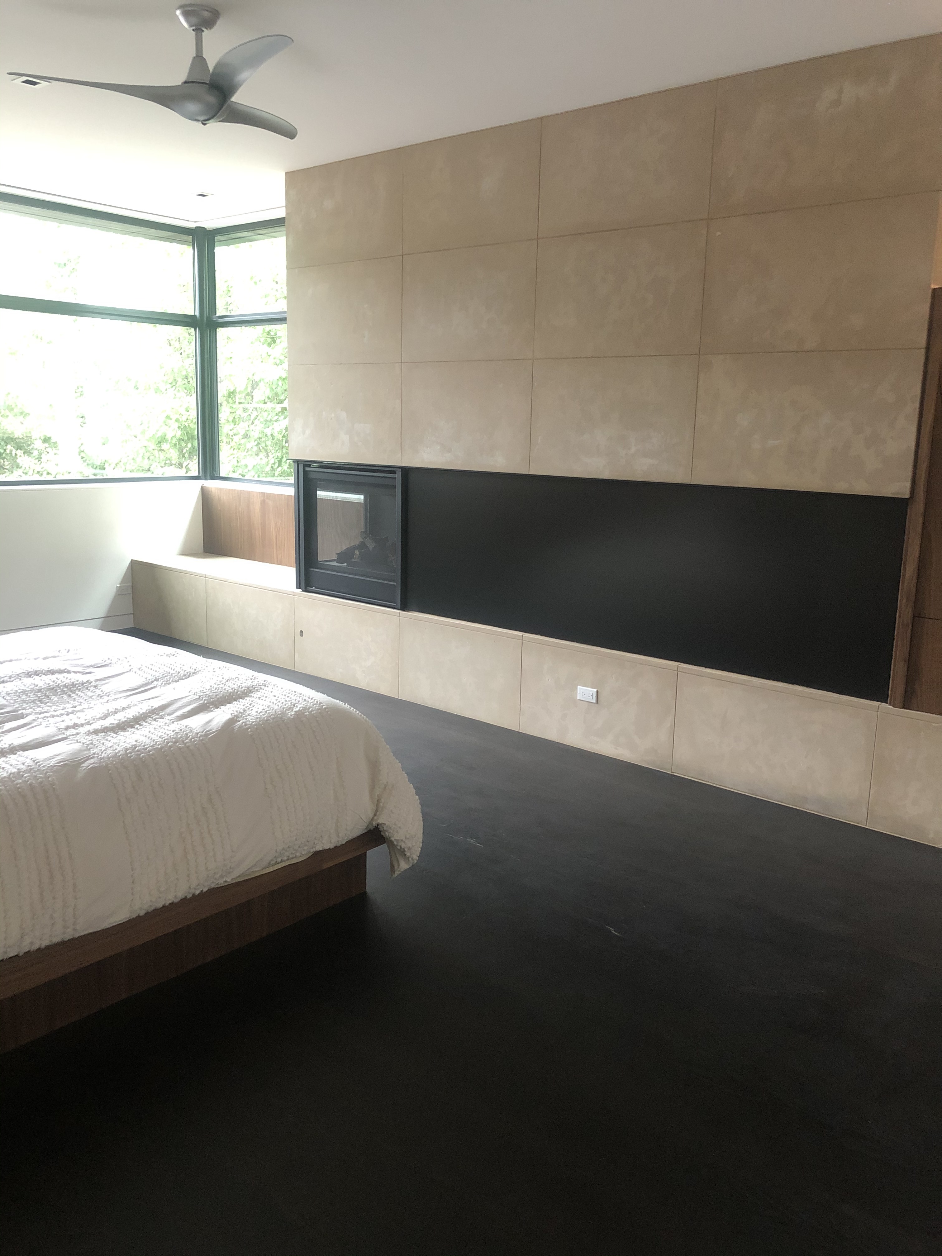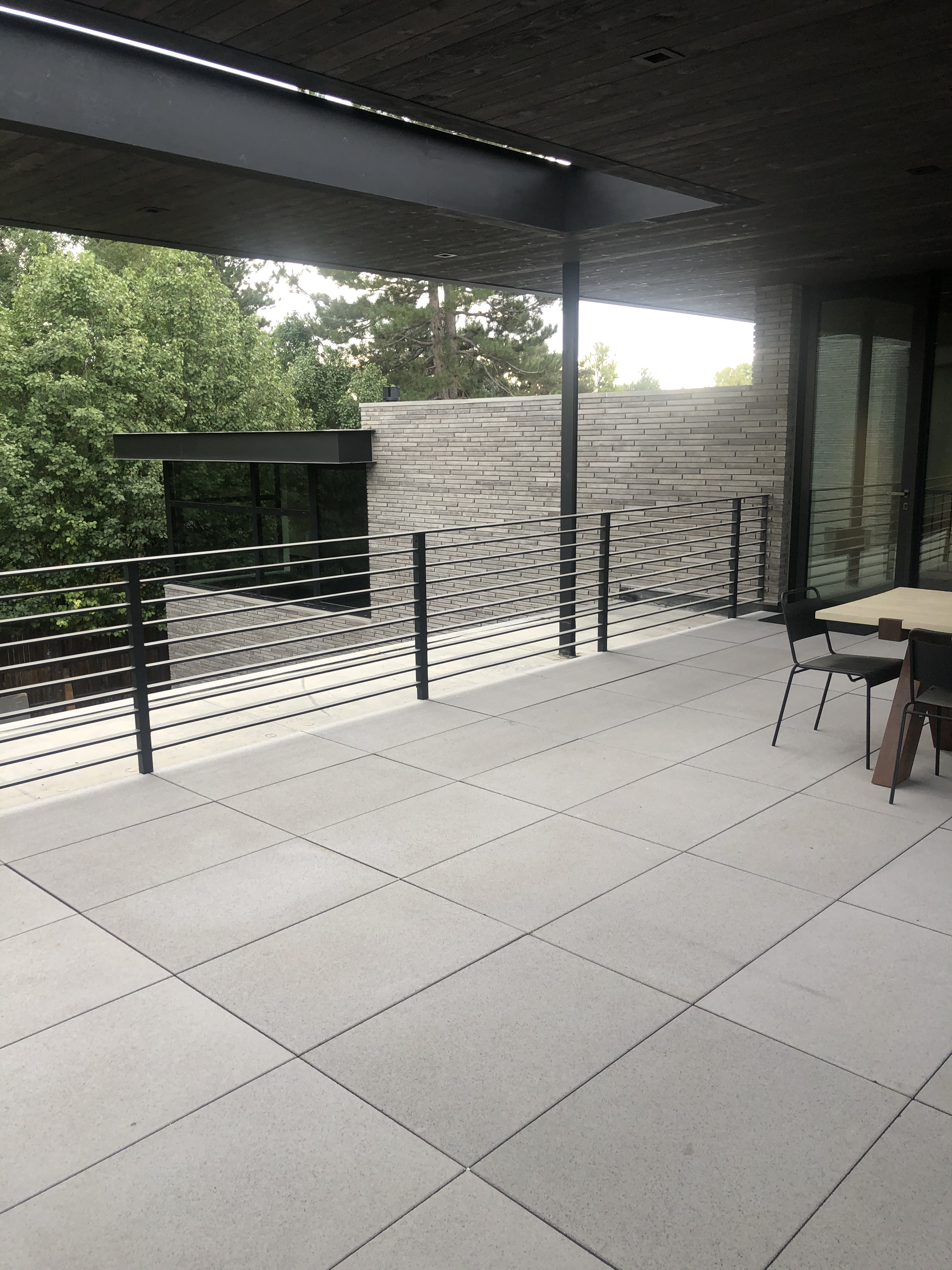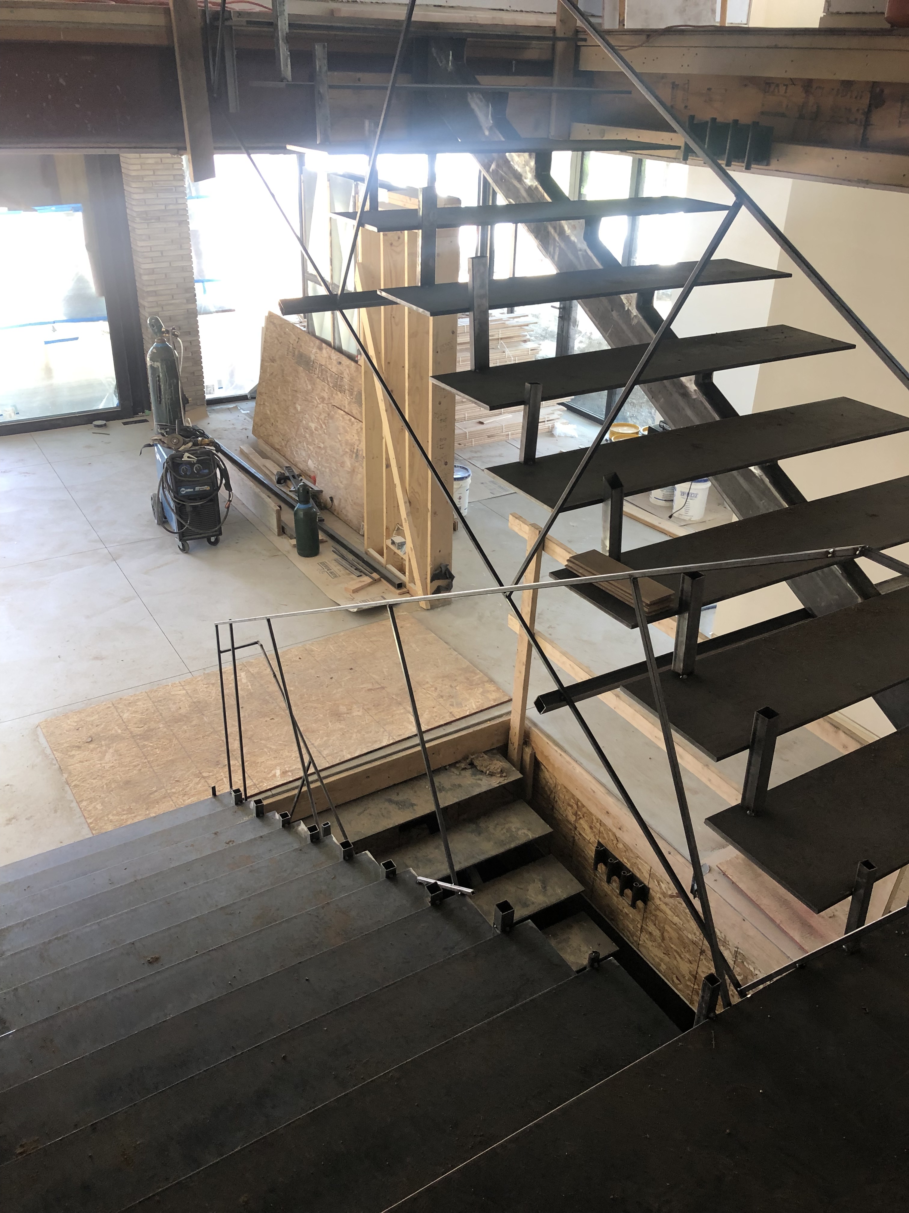 The main stair was built with a offset single spine, solid steel plate railing with a white oak illuminated handrail and 3/4″thick white oak treads. No exposed fasteners and hand built onsite.